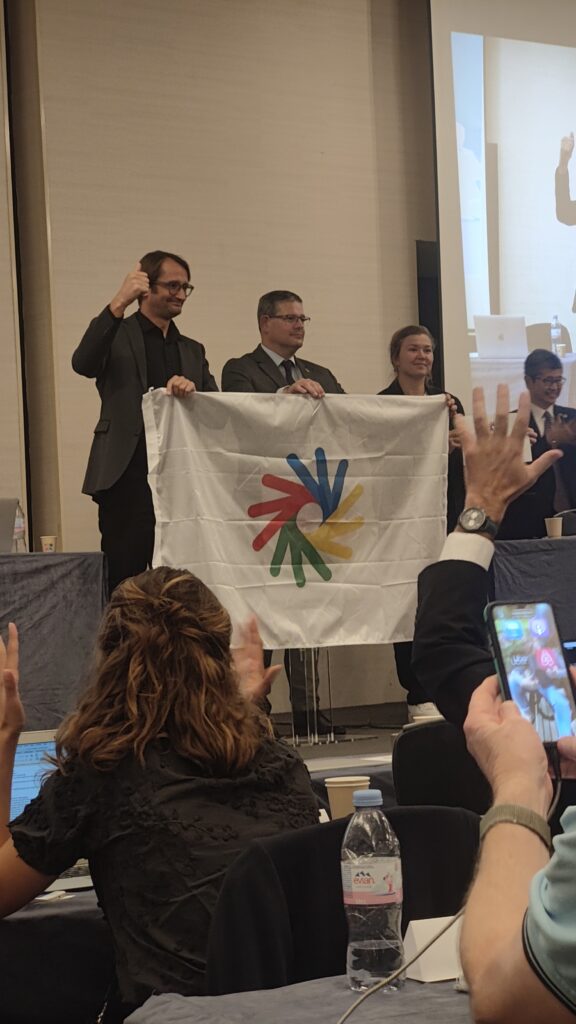 Kongressen sluttede med en festmiddag for at fejre ICSD’s 100-årsjubilæum – det første Deaflympics blev nemlig afholdt i Paris for 100 år siden. Her blev der skålet i bobler for 100 år mere i døveidrættens navn!